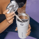 - Dual Sip lid allows you to drink from each side separately.