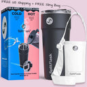 Introducing the world's first dual chamber tumbler for your hot and cold drink! This innovative stainless steel water bottle combines the benefit of two separate cups into one sleek design, allowing you to conveniently enjoy your favorite drinks simultaneously.